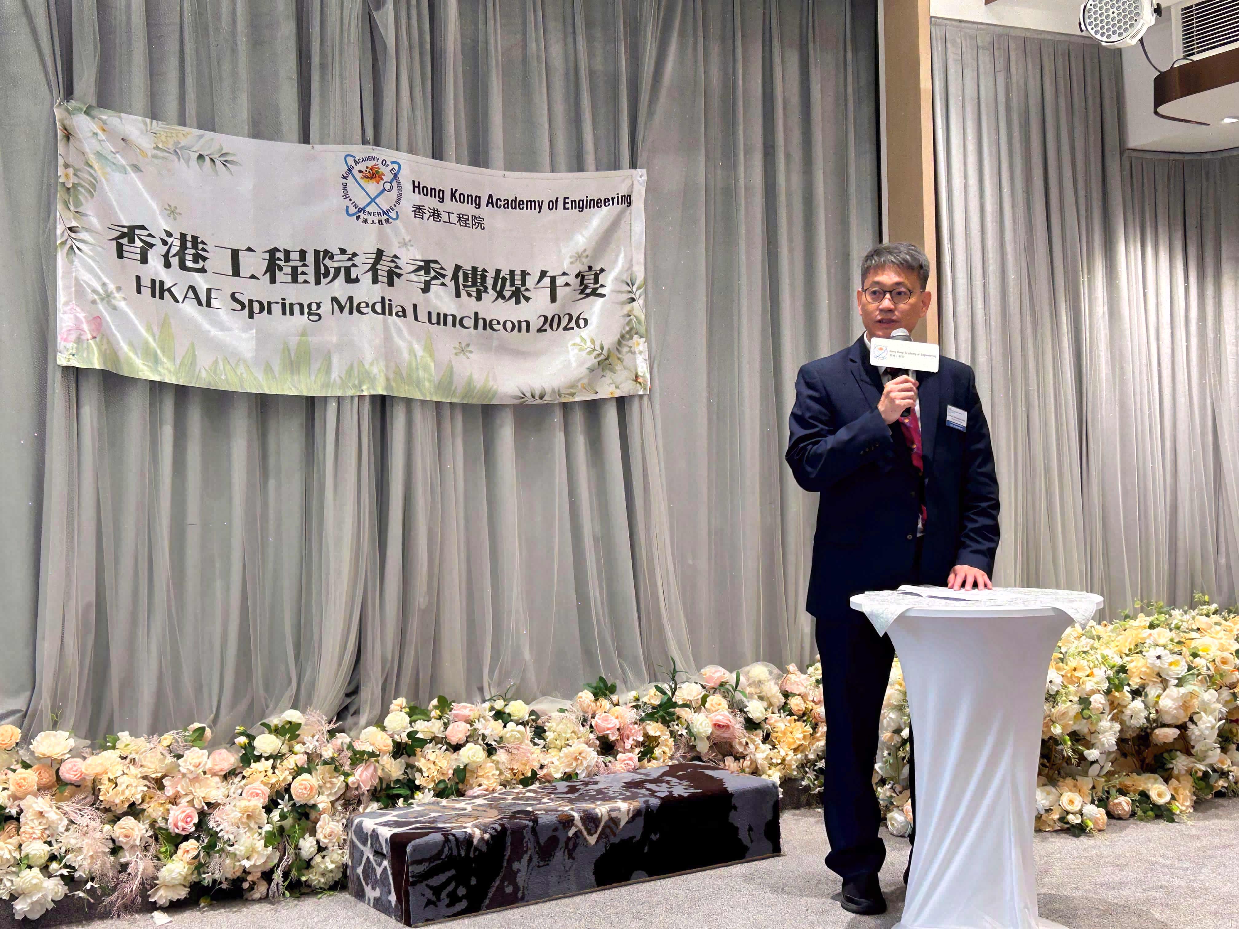 理事會成員梁廣偉博士於午宴上介紹 2026 香港工程科技獎(Hong Kong Engineering Science and Technology Award, HKEST Award)。香港工程院自 2022 年起與創新科技署合作設立此獎項,旨在表彰香港工程科學與科技領域中 45 歲或以下表現卓越的青年科研人員、工程師及創科人才,肯定他們在專業成就、創新貢獻及社會影響方面的卓越表現。
