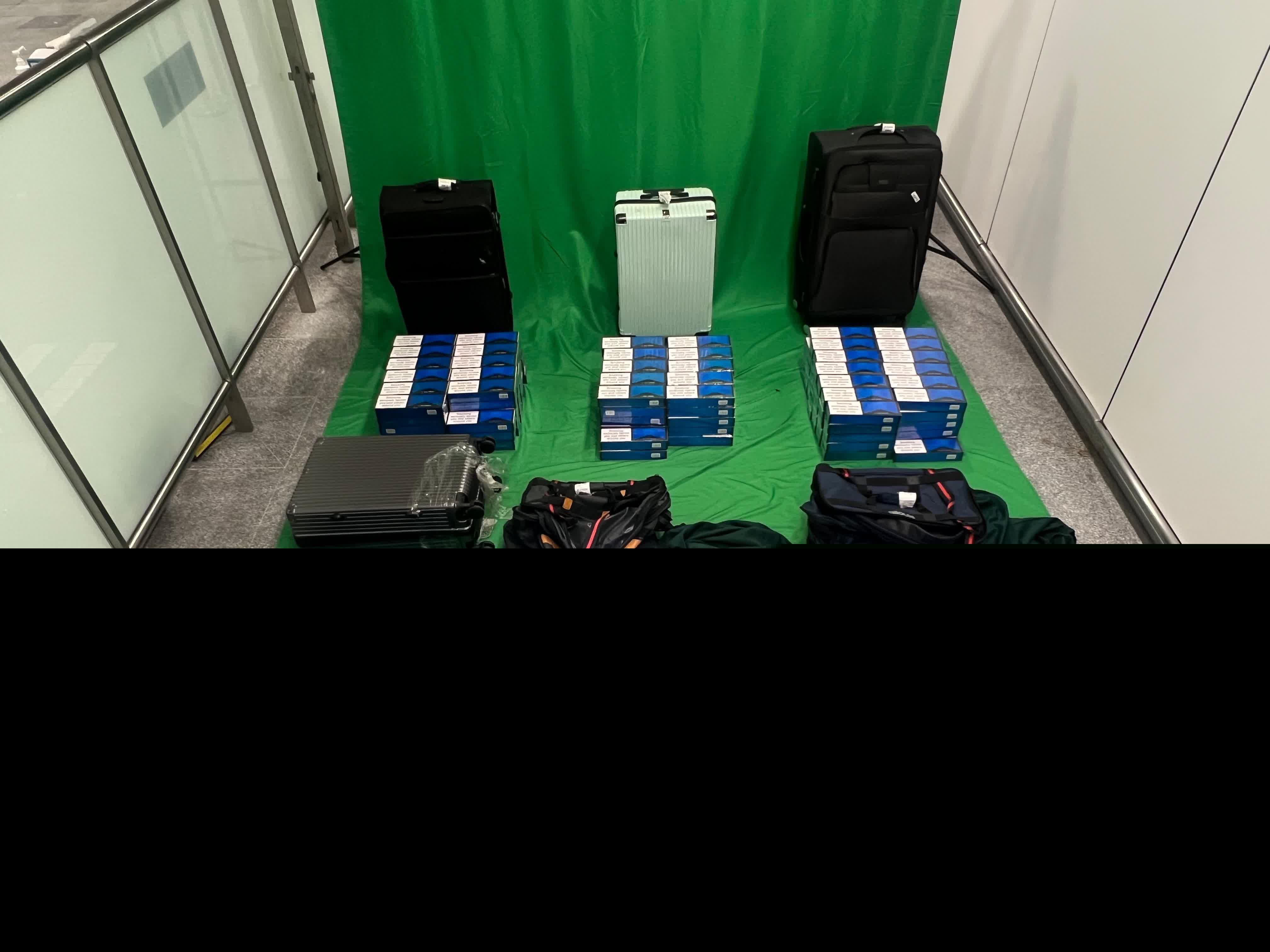 海關人員於2月3日在香港國際機場截查兩名分別32歲及38歲的抵港男旅客,並在他們攜帶的個人行李內檢獲約7.3萬支未完稅香煙,估計市值約32.85萬元,應課稅值約24.13萬元。兩名旅客隨即被捕。他們今日各被判處監禁7個月及罰款500元。