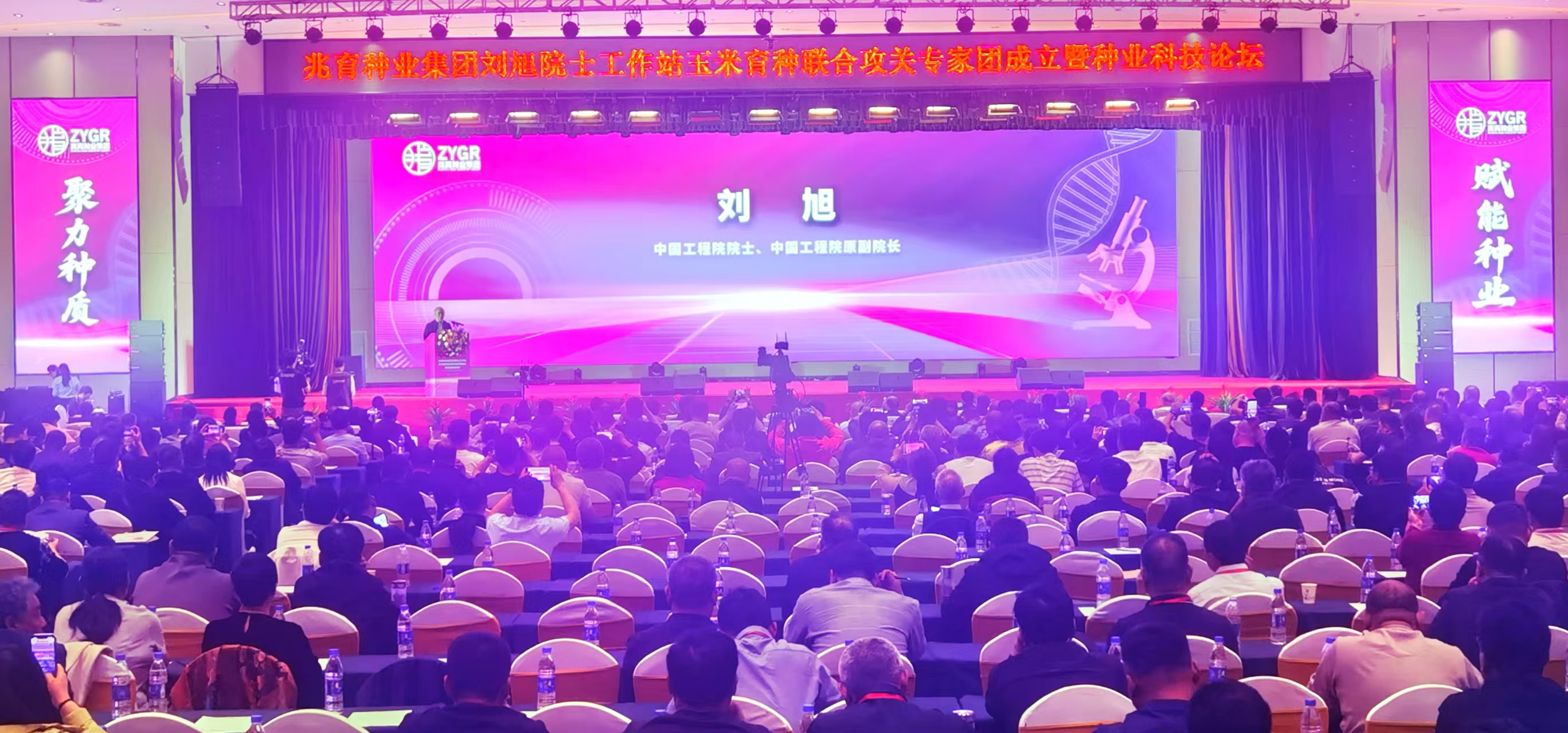 日前,中国工程院院士刘旭出席河北省兆育种业集团院士工作站揭牌仪式,宣布成立院士工作站玉米育种联合攻关专家团。刘旭在讲话中表示:“我们将依托工作站平台,结合当前市场需求,将耐密、抗倒、抗病、丰产性高的玉米种质资源进行收集、保护、鉴定与创新利用,构建核心种质库,为突破性品种培育提供源头活水”。