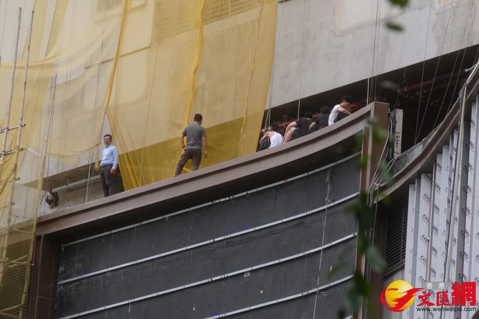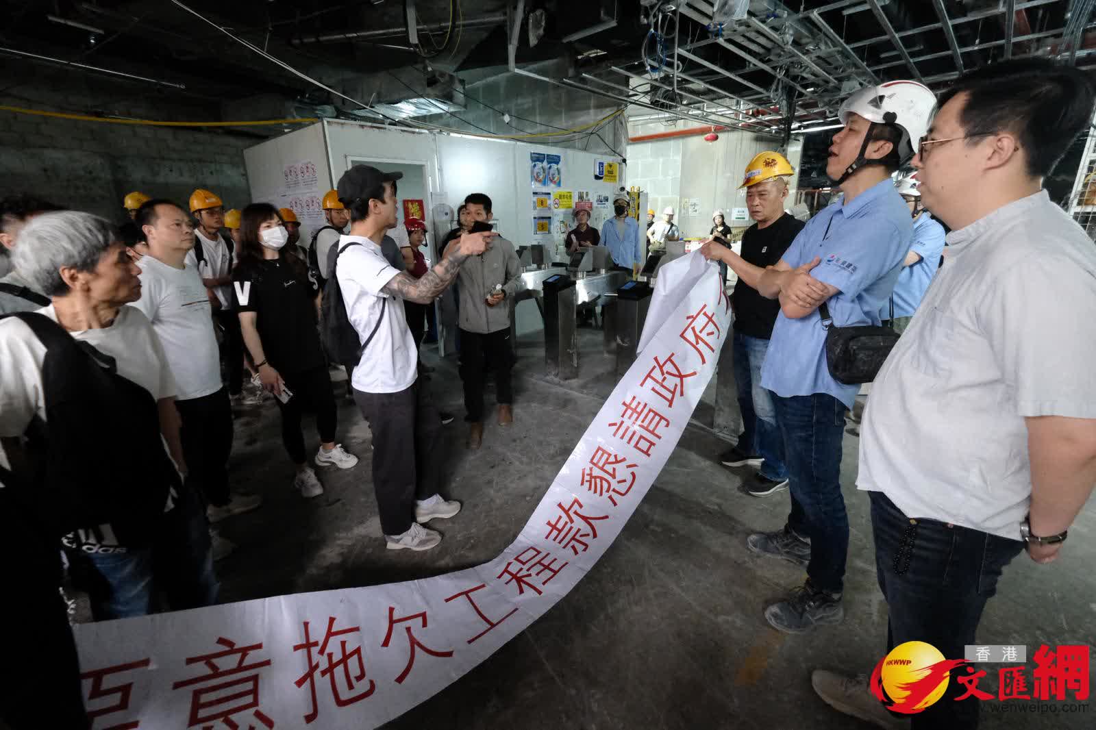 香港文匯報訊(記者 蕭景源)今日(17日)早上9時許,逾百名工人到達啟德沐縉街一地盤外聚集持標語及拉橫額追討合共數百萬元欠薪,其間約50名工人進入地盤抗議。警員接報到場調查期間,一名工人登上約5樓高平台位置危站,消防員需要開啟救生氣墊戒備,但未幾再有6名工人登上平台危險位置拉橫額,消防員需要開啟第二個救生氣墊,警方談判專家到場進行遊說,勞工處人員聯絡相關人士了解處理;警方暫列作「勞資糾紛」案處理。