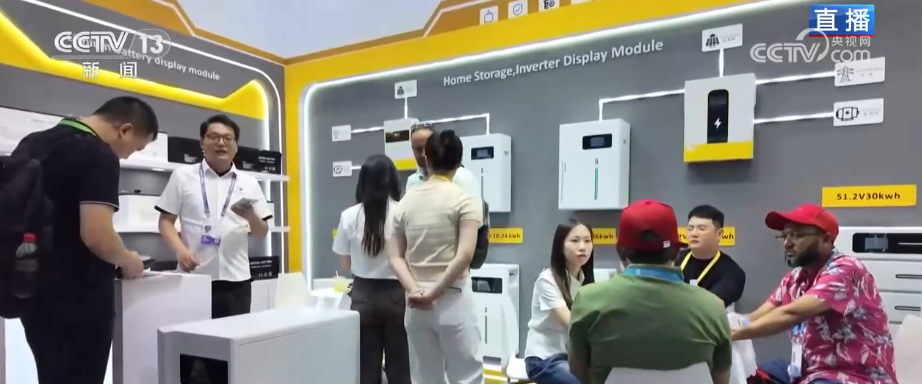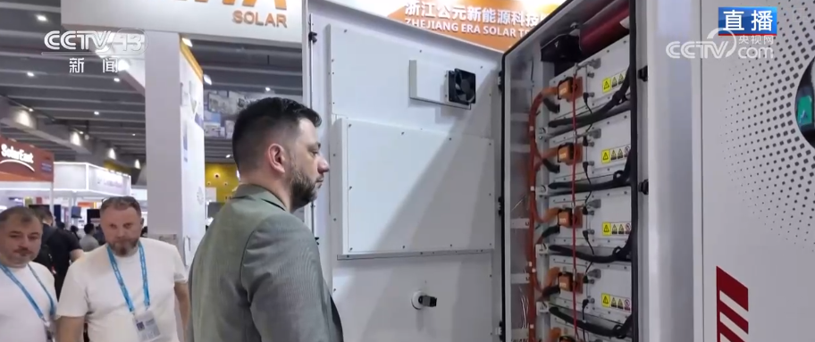 这是一块柔性太阳能板,可弯曲可折叠、薄膜材质,轻便的同时还能高效吸收太阳能。接上充电线手机就能直接充电,这还只是室内场馆的灯光,要是在室外阳光充足的环境下,充电效率和速度还会提升。这款好物可以说是妥妥的露营“搭子”。AI当“电管家” 工厂绿电精打细算看完便携好物,再来看看这个大家伙,它就是“AI能源管理+储能系统”,是用在工厂里的省钱方案。我们都知道,光伏发电是看天吃饭,白天有电晚上没辙,高峰不够用、低谷又浪费。这套系统接入了AI之后,就能精打细算、智能核算。系统会预测工厂的用电高峰,自动算出光伏该发多少电、储能该放多少电,让每一度电都用在刀刃上。据了解,这两天,这个展位吸引了很多来自东南亚、非洲的代理商来咨询。展位在第一天是有3个工作人员,他们根本忙不过来,第二天直接加足人手,配上了10个工作人员来对接海外客商。家庭绿电应用方案“圈粉”海外客商