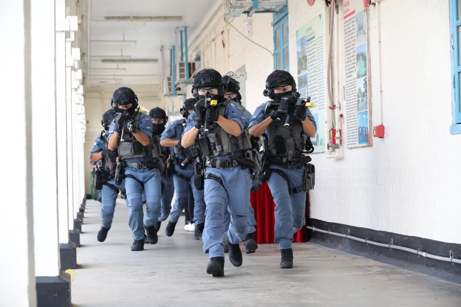 演習中反恐特勤隊人員手持的長槍為警隊最新配備的CS/LS7 衝鋒槍(又稱 LS7),設計重點在於輕巧、易操控,並提升近距離射擊精準度。