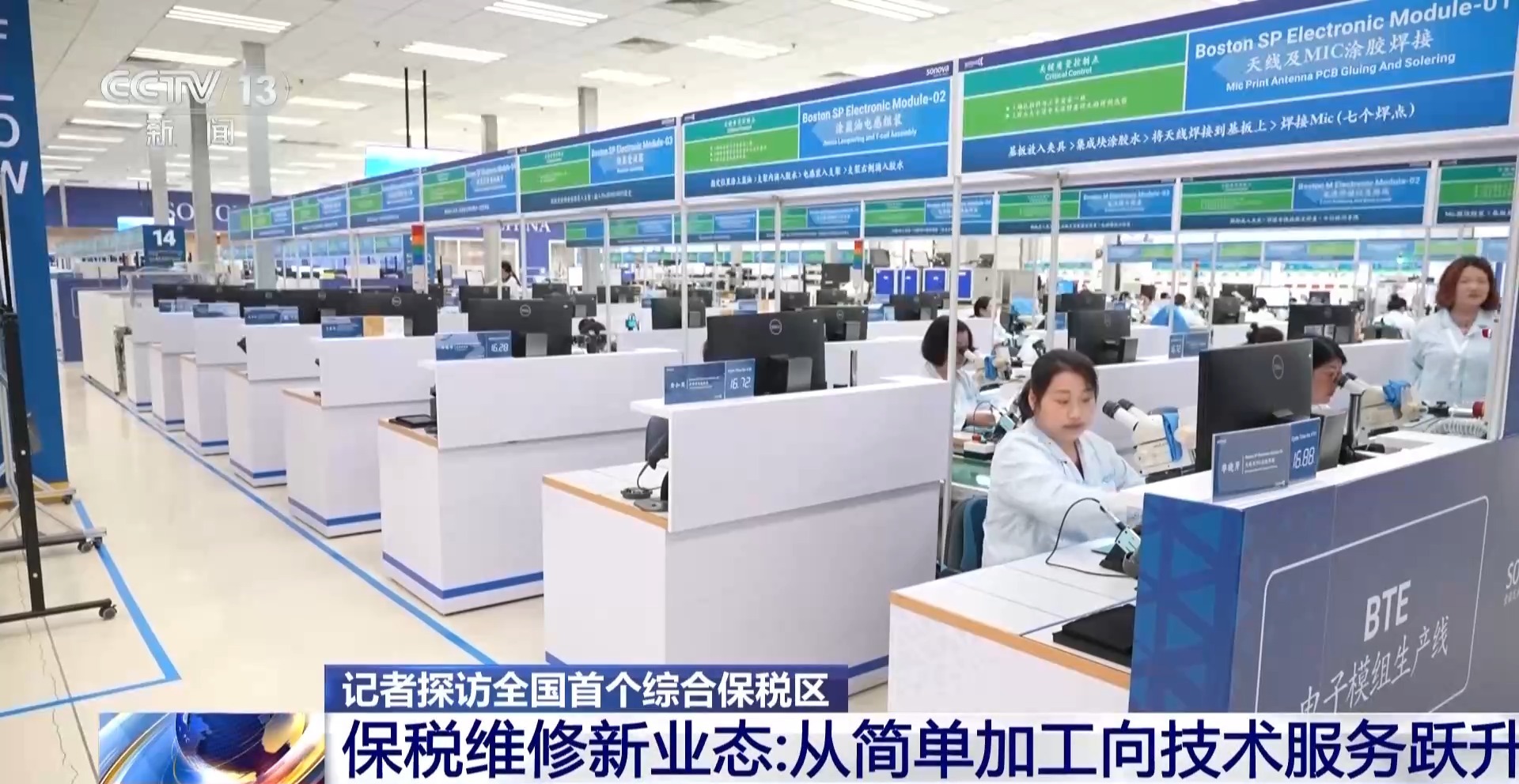 总台央视记者 叶奂:传统的加工贸易主要是从国外买原材料或者零部件,在国内进行加工组装成品之后再出口,主要赚的是“加工费”。而如今的“保税维修”外贸新业态,可以说是加工贸易的升级版和高质量版,因为它聚焦电子产品、医疗器械等产业,开展售后检测维修等等业务,赚的不仅仅是“加工费”,同时还有技术服务费。