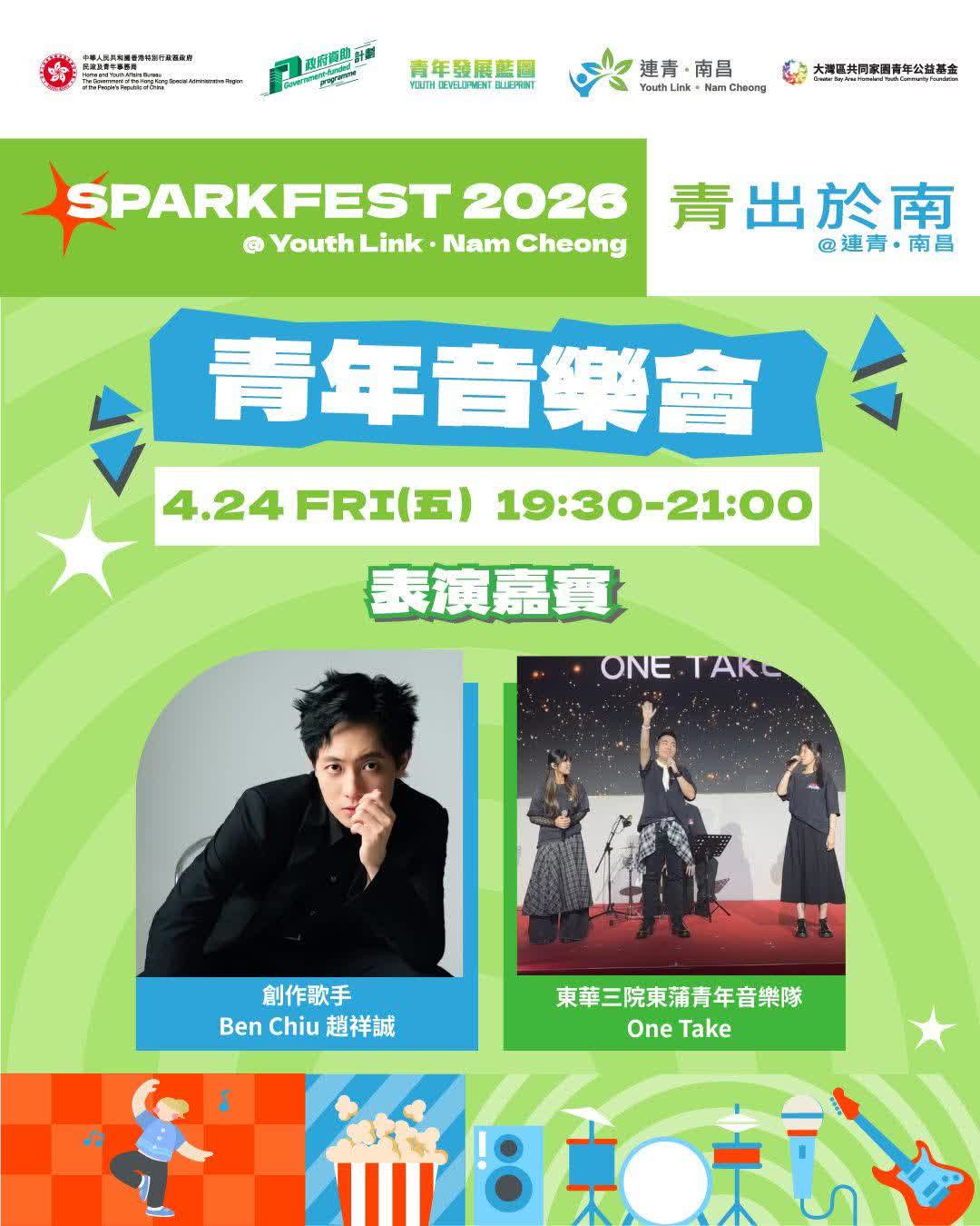 「青出於南2026@連青・南昌」(SPARKFEST 2026 @ Youth Link‧Nam Cheong)將於4月24日舉行啟動禮。「連青・南昌」由香港特別行政區民政及青年事務局(下稱「民青局」)設立,為「連青人網絡」會員提供的一個實體互動平台,作為《青年發展藍圖》措施的實踐基地,並由大灣區共同家園青年公益基金(下稱「大灣區青年基金」)負責管理及營運。「連青人網絡」是民青局於2023年9月推出的重點措施,讓青年人發展多元化才能及回饋社會。