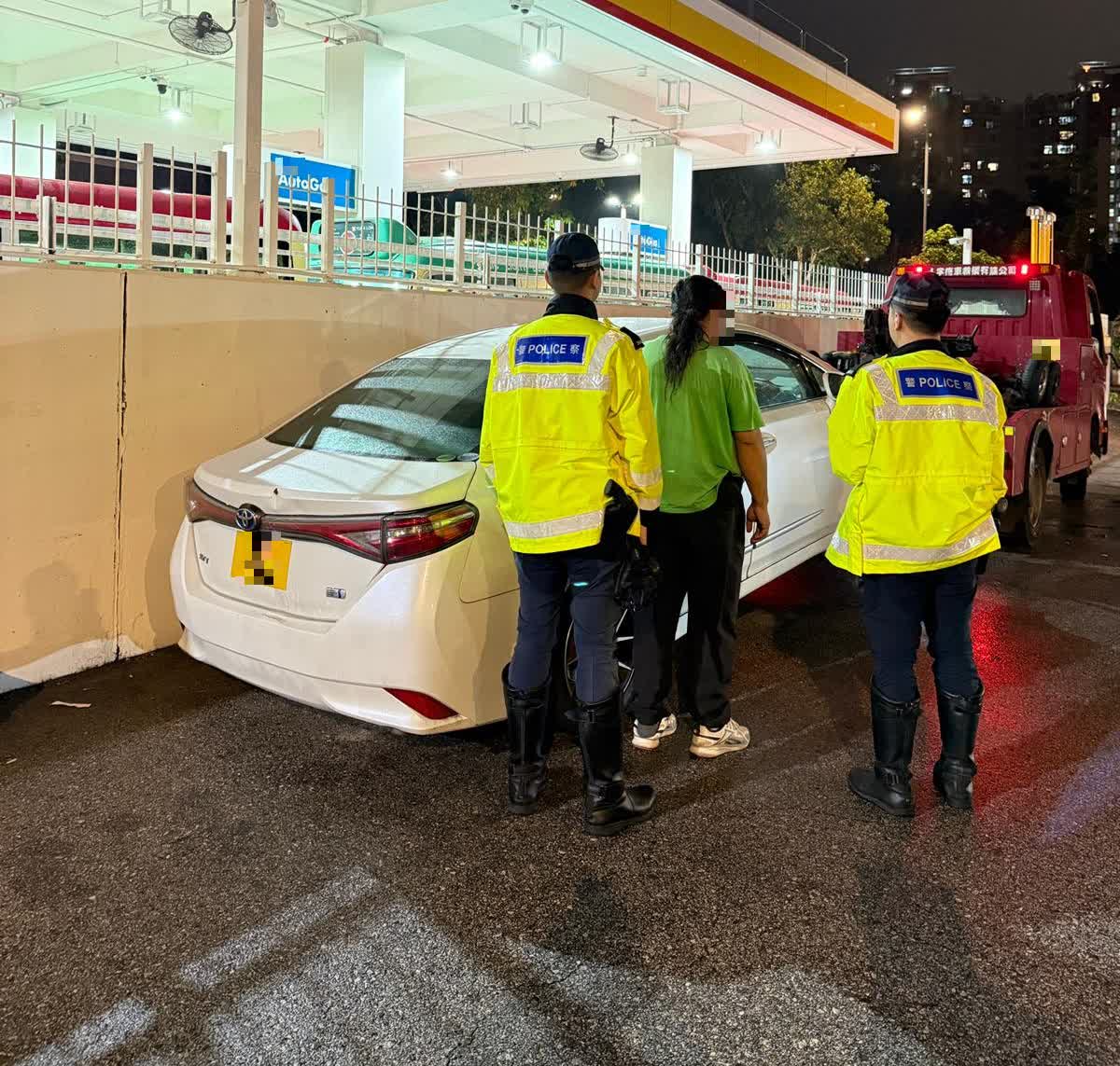 行動中,人員於元朗區喬裝乘客,截獲兩輛懷疑涉及非法載客取酬的私家車(俗稱「白牌車」)。兩名分別42及46歲本地男司機,涉嫌「利用汽車作非法出租或取酬載客用途」,稍後警方將發出傳票作票控。