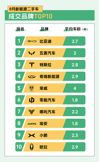 受到今年第二季度新车价格战的影响,不少新能源车主选择更新换代,释放大量新能源“准新车”流入市场。瓜子二手车大数据显示,8月交易的新能源二手平均车龄为2.4年,环比下降0.2%,整体成交价格企稳。
