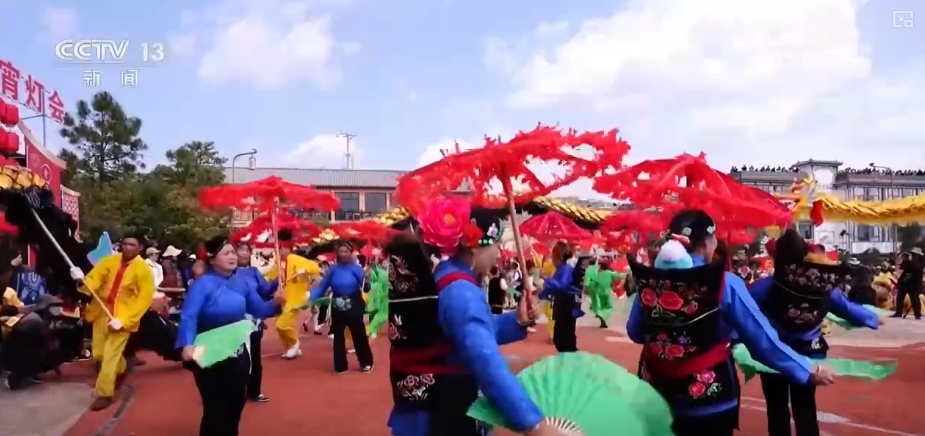 在雲南大理彌渡,元宵鬧花燈,每個村都會自發組成燈班,參與演出的人員達數千人。