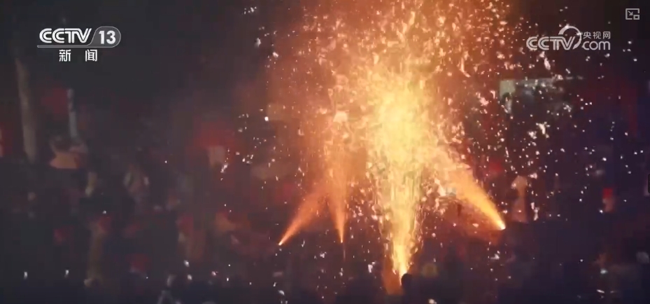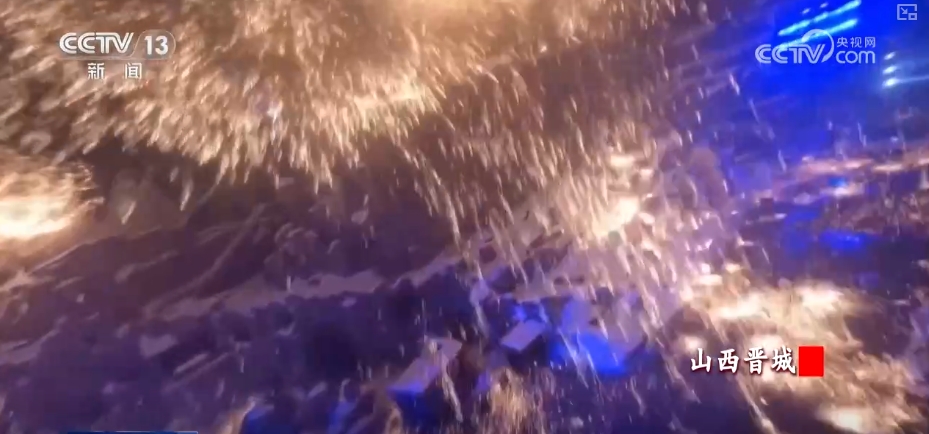 山西晉城有著悠久的鑄鐵歷史,鐵水也被匠人們賦予了藝術之美。 1600攝氏度高溫的鐵水裝進特製的容器,用力擊打,鐵水沖天而起,火星四射、震撼十足。