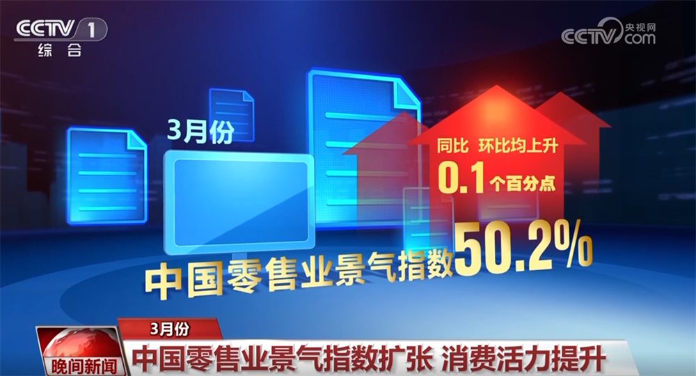 The latest data released by the China Federation of Commerce showed that in March, China's retail industry prosperity index was 50.2%, up 0.1 percentage points year-on-year and month-on-month, maintaining its expansion range. Among them, the leasing and operation index was 51.4%, up 0.3 percentage points month-on-month, the development confidence of leasing and operation enterprises stabilized, and the store occupancy rate increased significantly; the e-commerce business index rose 0.8 percentage points month-on-month. Experts said that in March, the retail industry entered the peak period for new products to be launched in spring, and the retail scenarios of new stores, new products and diversified and personalized services gradually increased. Driven by favorable policies such as "old for new", the vitality of the consumer market has rebounded significantly.