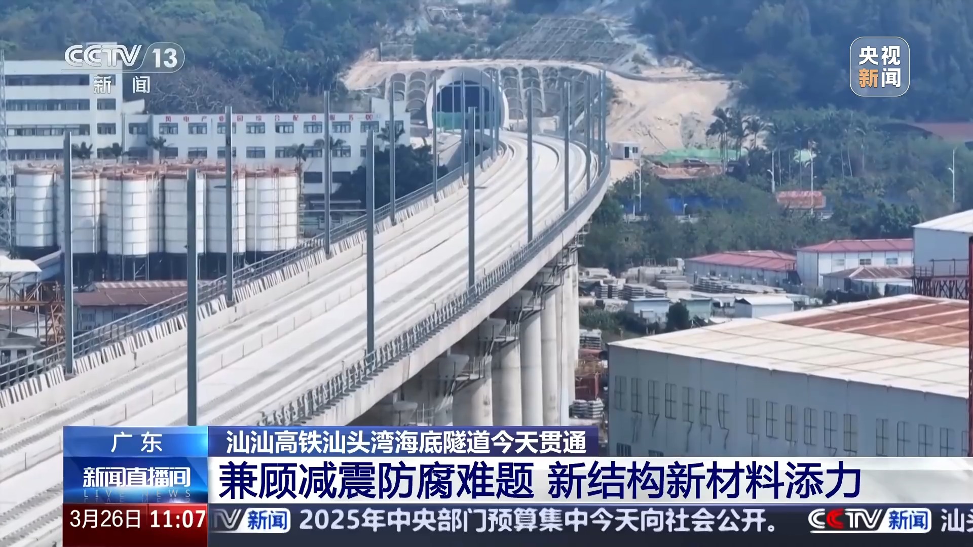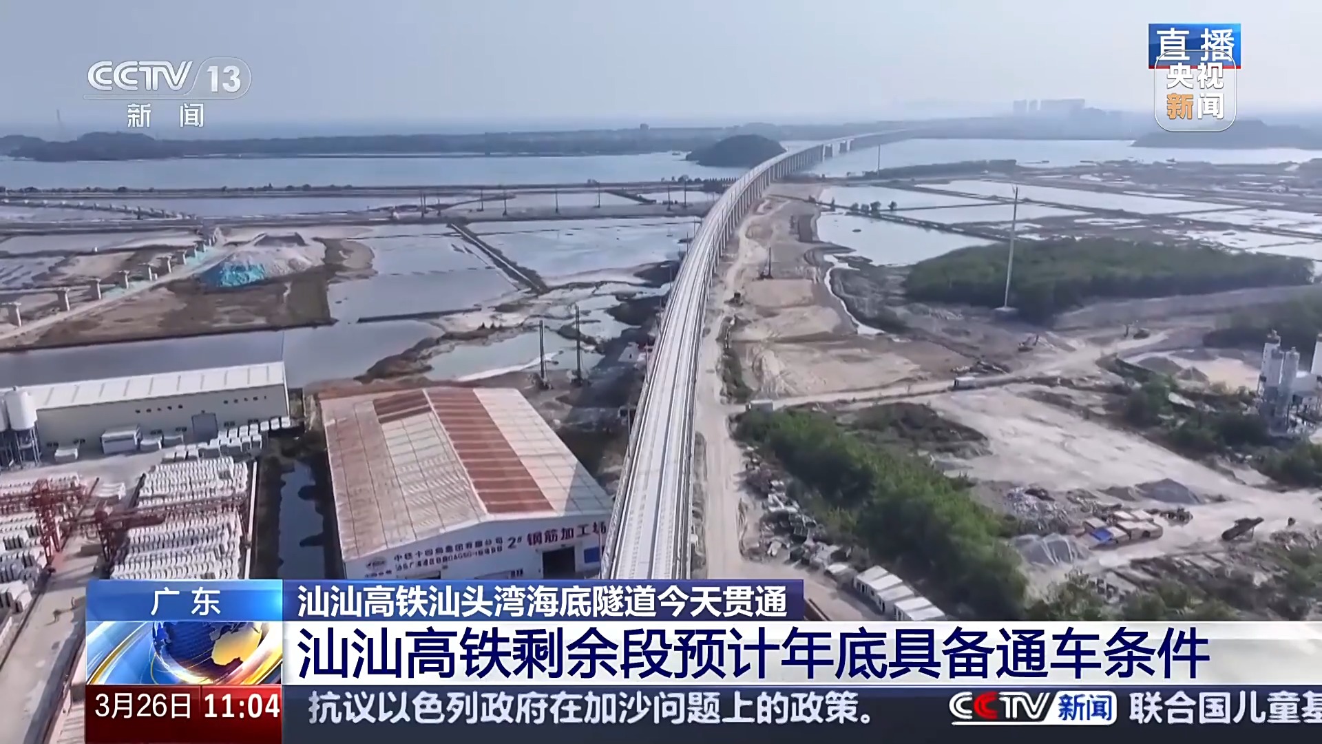 汕汕高铁,正线全长约162公里,从广东的汕尾到汕头,其中,汕头南至汕尾段已于2023年底先行通车,剩余段也就是最难攻克的汕头湾海底隧道所在的这一段,今天贯通后,预计今年年底具备通车条件。