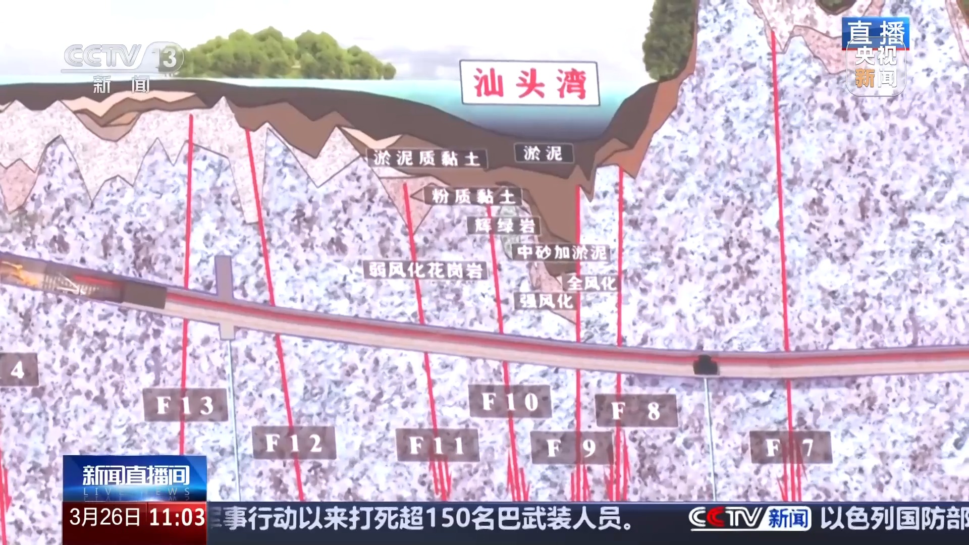为什么这么设计呢?这就不得不提到汕头湾海底隧道建设的难度。汕头湾海域位于8度高烈度地震区,隧道共需要穿越17条断层破碎带。最硬的区域要穿越花岗岩,最薄弱的区域要穿越只有2米多厚的薄弱岩盖,用建设者的话来说:“建高铁海底隧道可能遇到的问题,这里都遇到了。”