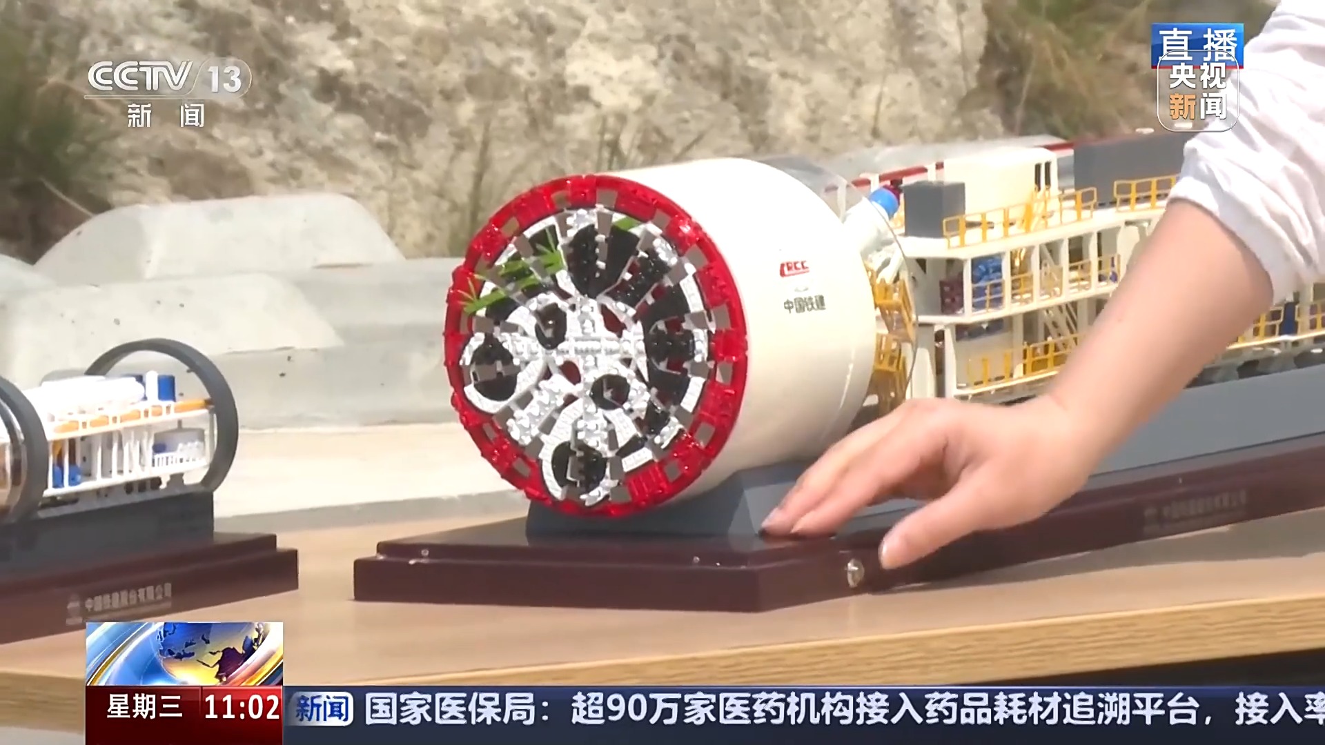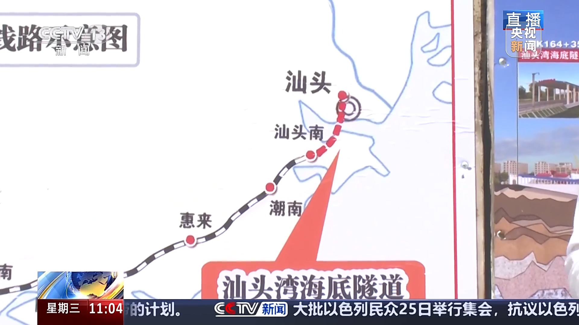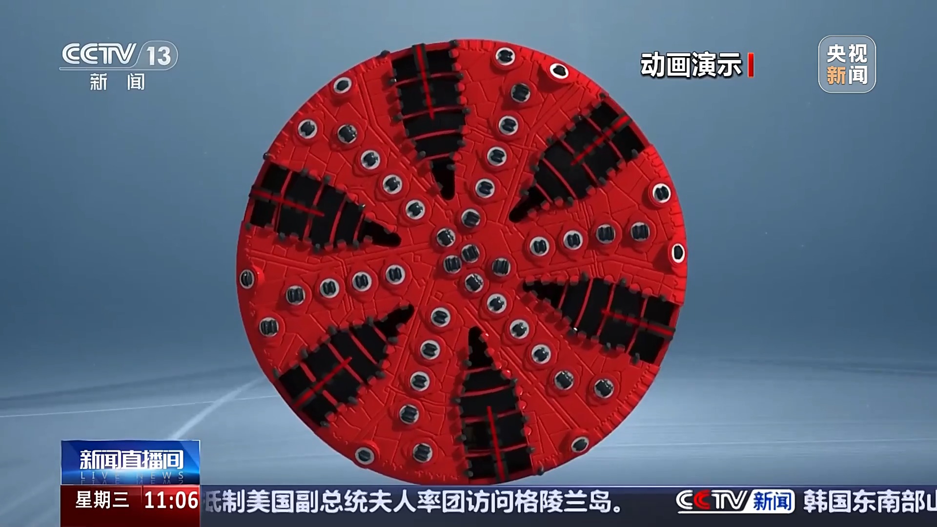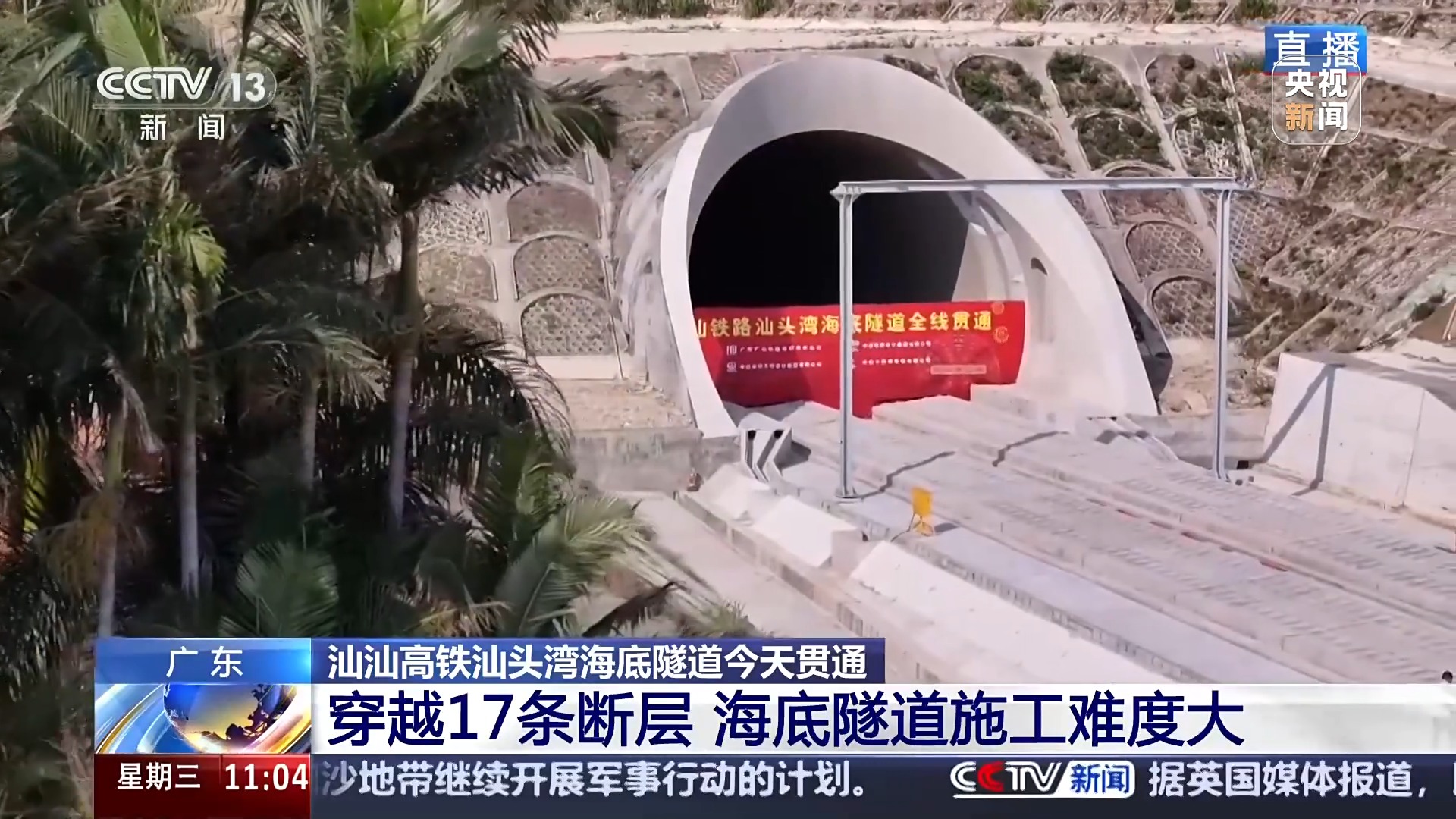 总台记者 吴媚苗:从空中看,全长9781米的隧道穿越的是碧蓝的汕头湾海域。盾构机的直径达到14.57米,相当于5层楼左右的高度,这也是目前我国高铁海底隧道中应用的最大直径盾构机。