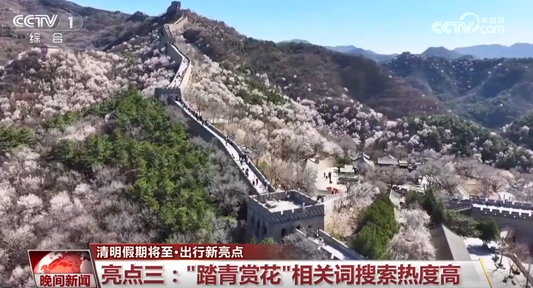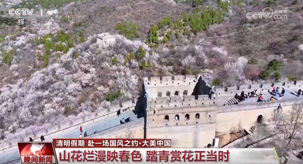 In the past two days, Beijing Badaling Great Wall has ushered in the most beautiful flower viewing season. Peach blossoms all over the mountains are blooming, decorating the winding Great Wall into a pink and white "sea of flowers".