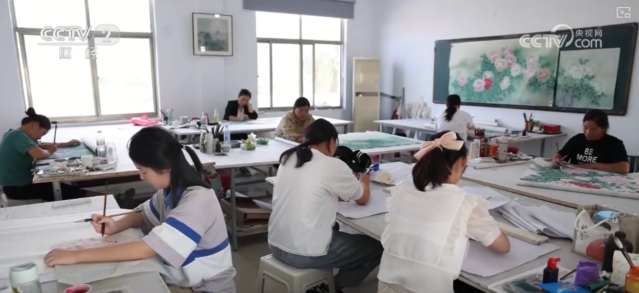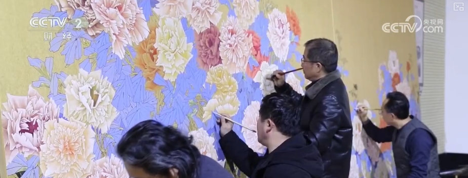 而在菏泽的巨野县,工笔牡丹画成为了这里的支柱产业。画师笔下的牡丹枝繁叶茂,叶片层次分明,花叶错落有致,将牡丹的雍容华贵展现得淋漓尽致。目前,巨野县牡丹画产业的年产值达45亿元,产品远销海外40多个国家和地区。