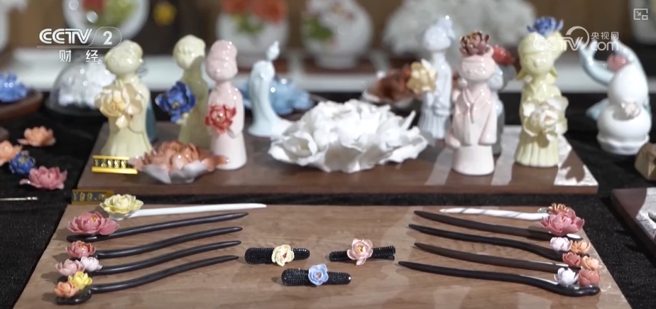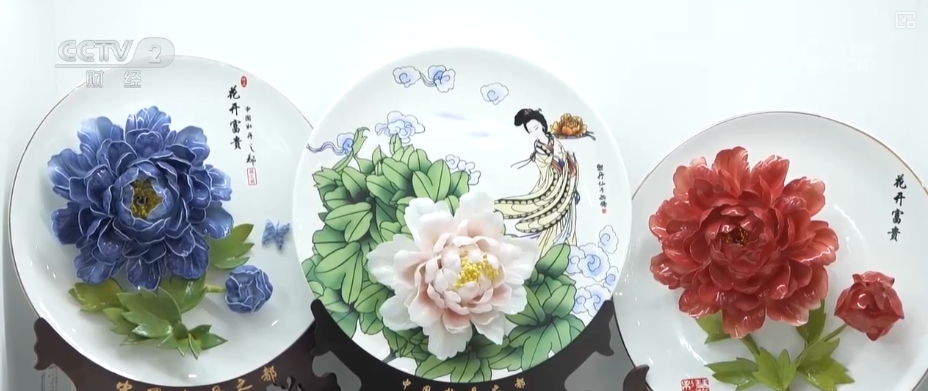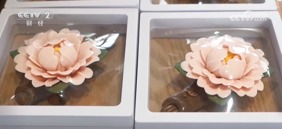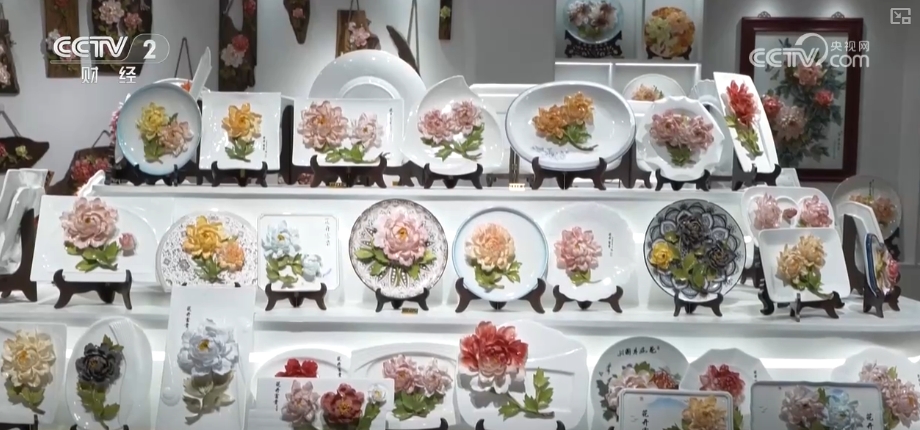 文创产品的热销,也带动了菏泽当地传统文化产业的发展。牡丹瓷以白瓷土为原料,手工加工成姿态万千的牡丹花瓣、叶片,再经过素烧、施釉、上彩等10余道工序制作而成,被誉为“永不凋谢的瓷上牡丹”。在曹州白瓷非遗传承人刘慧丽的工作室,员工们正在加紧制作牡丹瓷的文创产品。