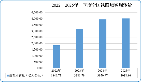 Figure 1 National railway passenger volume in the first quarter of 2022-2025