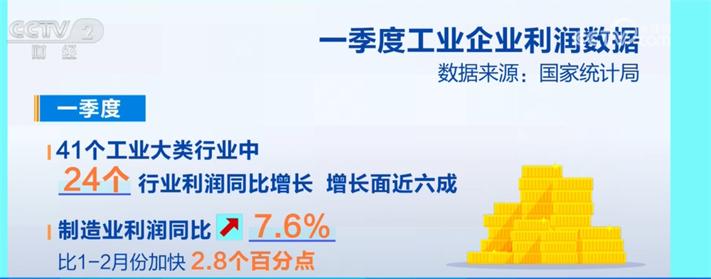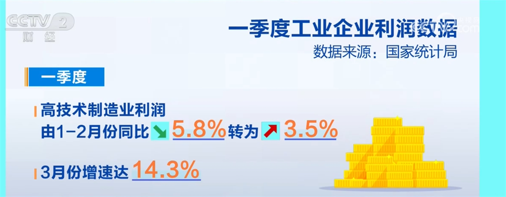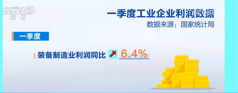 CCTV News: Data released by the National Bureau of Statistics on the 27th showed that in the first quarter, the total profit of large-scale industrial enterprises across the country was 1509.36 billion yuan, a year-on-year increase of 0.8%. The profits of industrial enterprises have increased from decline, the profit support role of equipment manufacturing and high-tech manufacturing industries is obvious, and the quality and efficiency of industrial economic development continue to improve.