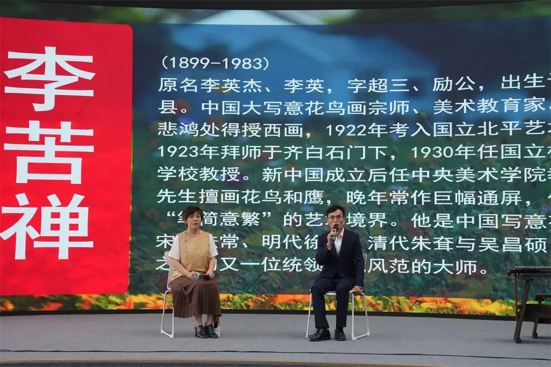 At the beginning of the event, Feng Tong of the Ministry of Public Education of Jinan Art Museum (Jinan Painting Academy) led participants into the exhibition hall of the boutique sketches for commemorating the 125th anniversary of Li Kuchan's birth, and deeply interpreted the art and personal charm of Li Kuchan's freehand flower and bird paintings. "The concise lines outline the vigorousness of the loose dry, splashing ink to render the mist of the lotus leaves, the eagle and the lotus pond in Mr. Mr.'s writings, "washing the eternal feathers and the sky", "the interest of heaven is full of interest", "live and fragrant" is not only a presentation of natural objects, but also a portrayal of the spiritual realm of "forget things and myself" and a symbol of personality and integrity. The speaker combines the brush and ink techniques of "using calligraphy into painting" in the work and the philosophical connotation of "harmony of man and nature" to guide everyone to feel the life tension contained in the painting and the inner voice of Master Li Kuchan by observing the rapid and slightest color of the ink. Participants sometimes stop and stare, and sometimes communicate softly, feeling the healing power of Master Li Kuchan after suffering and still follows the true national spirit of art.