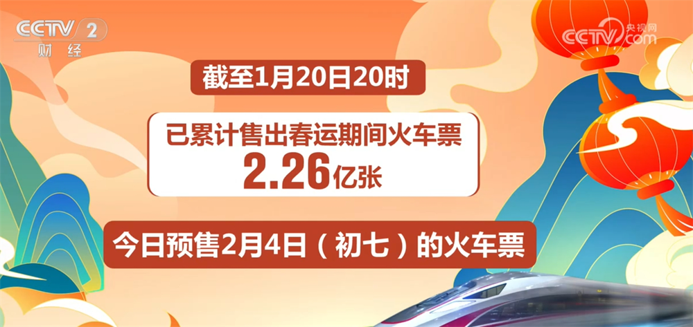 The reporter learned from the China Railway Group that on January 21, the national railway is expected to send 13.15 million passengers, and plans to add 1,716 passenger trains. The passenger flow in key areas such as Beijing, Shanghai, and Guangzhou has further increased. As of 8 pm on the 20th, a total of 226 million train tickets during the Spring Festival travel rush have been sold. On the 21st, passengers can purchase train tickets for February 4, which is the seventh day of the first lunar month through the 12306 website or mobile client. On the 21st, the national highway network traffic was expected to exceed 35 million vehicles, showing a significant growth trend.