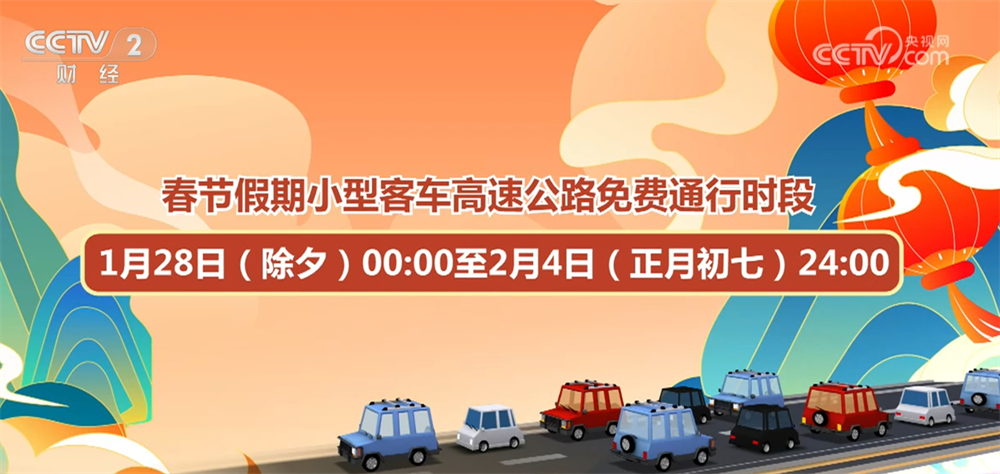 In addition, the reporter learned from the Ministry of Transport on the 21st that tolls will be exempted from small passenger cars on the expressway during this Spring Festival holiday. The free passage period starts and ends from 00:00 on January 28 (New Year's Eve) to 24:00 on February 4 (the seventh day of the first lunar month), totaling 8 days.