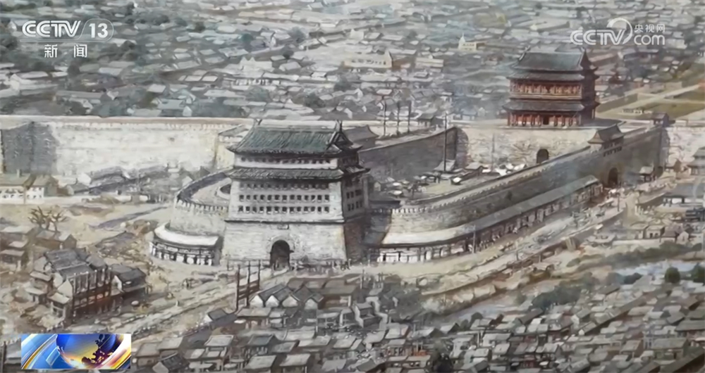 国家大剧院艺术品部部长刘欲晓称:“大家可以很清楚地看到中轴线的景色,我们也可以看到很典型的四门三桥五牌楼,展现北京城市生活,尤其是老城区的胡同色彩斑斓、生机勃勃。”