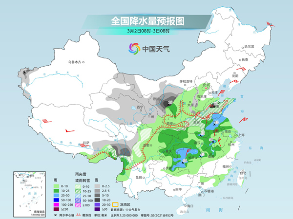 Today and tomorrow, as the cold wave moves southward and the warm and humid air flow converges violently, precipitation in the central and eastern regions enters the strongest period of the process. With the cooling down, rain-turning snow will occur in the eastern part of the northwest region, western and southern North China, Huanghuai, Jianghan, Jianghuai and other places, among which the precipitation in Shandong is complex. The day after tomorrow, there will still be large-scale rainfall in Jiangnan, South China and other places.