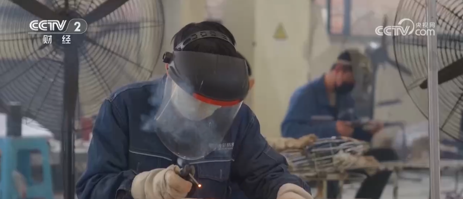 In the production workshop of a local lantern company, welding flowers splashed, and a "big crab" was taking shape; on the other side, the artist was spraying paint to color, and the mandarin duck colored lights gradually showed their charm. From designing images to making shapes, to completing papering and painting... a complex lantern production cycle often reaches three months.