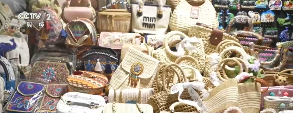 In the Xishuangjing Scenic Area of Gaozhuang, Xishuangbanna, the dazzling array of delicious food, exquisite handicrafts and colorful ethnic costumes are dazzling. Tourists from Laos traveled through the scene, carefully selecting their favorite products.