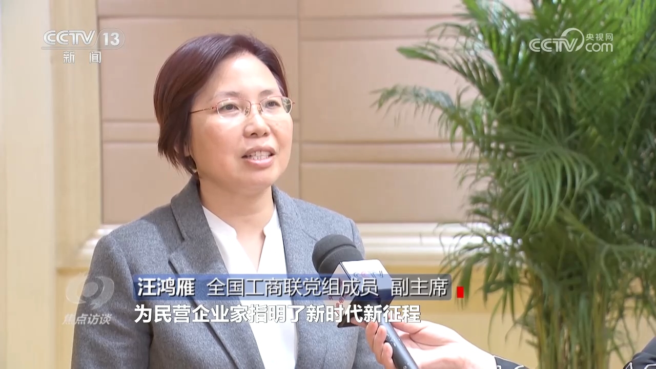 全国工商联党组成员、副主席汪鸿雁:“总书记的重要讲话,为民营企业家指明了新时代新征程开拓创新、实现高质量发展的努力方向。民营企业在经营发展过程中碰到这样那样的困难、问题,要保持定力,苦练内功,把思想和行动统一到党中央对经济发展的决策部署上来,敢闯、大胆干,不躺平、不退缩,坚定走高质量发展之路。”