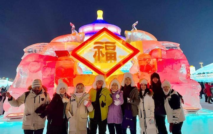 泰国、马来西亚等热带国家游客则选择去“冰城”哈尔滨尝试溜冰、滑雪、打陀螺、看冰雕,尽情享受冰雪乐趣。
