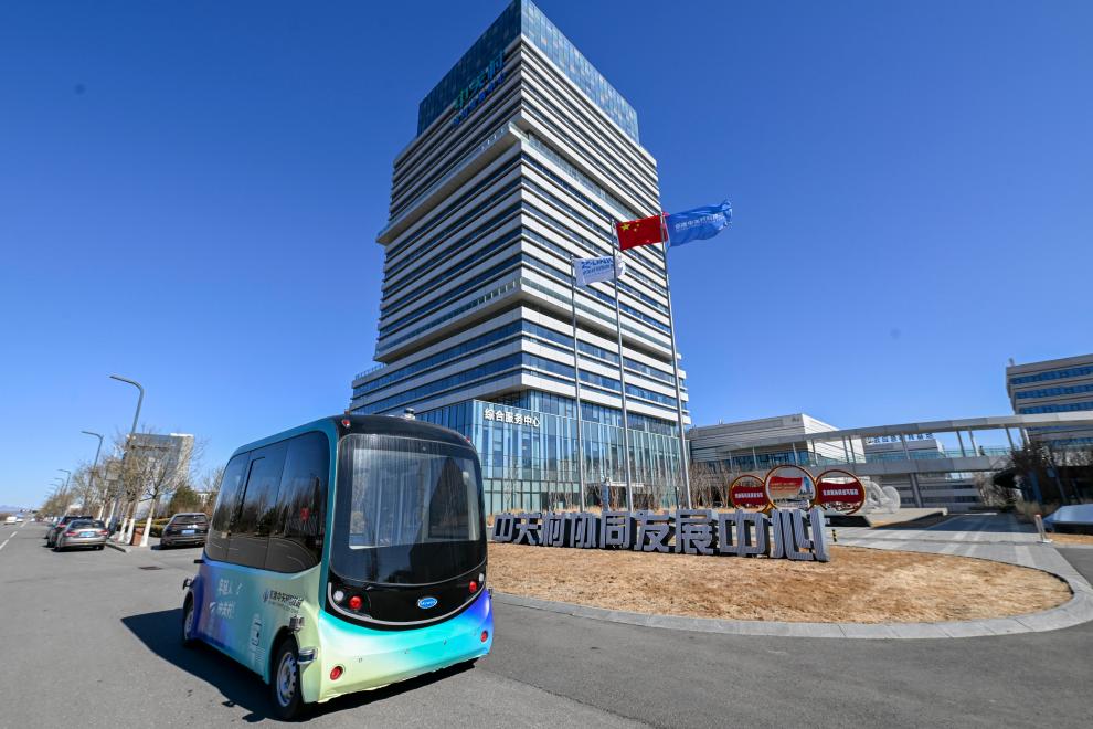 Daerah, Tianjin. Tiada pemandu di dalam bas, hanya pegawai keselamatan yang dilengkapi. Ia hanya mengambil masa 18 minit untuk sampai ke Beijing-Tianjin Zhongguanancun Sains dan Teknologi City.