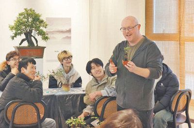 茅檐石壁的传统民居,造型多变的川派盆景,位于四川崇州市观胜镇的严家弯湾,人和、景美、风光好。沿着蜿蜒曲折的小径,走过几处民居,便来到加拿大盆景师查德·辛克莱(中文名“白熊”)的小院。受外婆影响,白熊自小便对中国传统文化充满好奇。因热爱中式盆景,他来到中国潜心学习研究,一晃已过去20多年。
