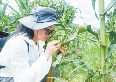 查达在贵州省施秉县开展玉米病虫害防治工作。贵州大学供图