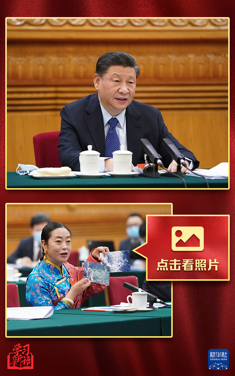 每年全国两会“下团组”,习近平总书记总会与代表委员们亲切互动、坦诚相见。在面对面深入交流中,常有代表委员用照片向总书记展示家乡的今昔对比或最新面貌。