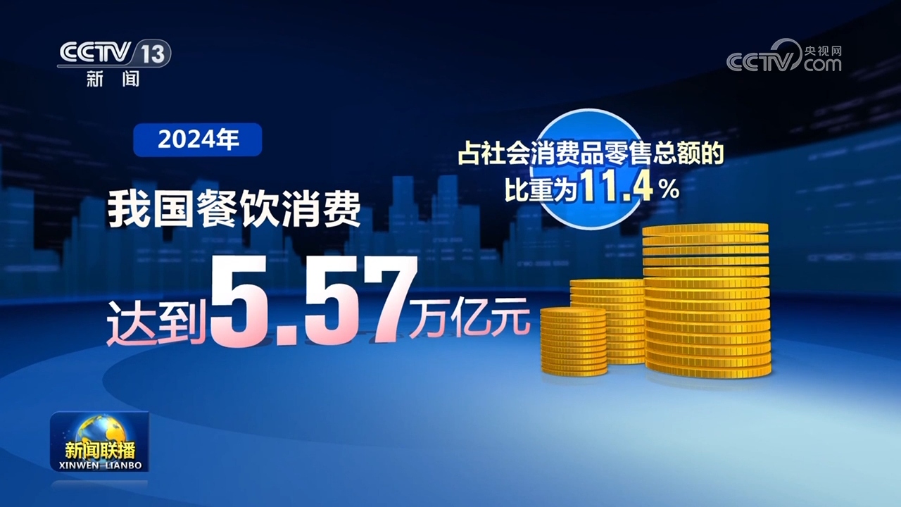 据统计,2024年,我国餐饮消费达5.57万亿元,占社会消费品零售总额的比重为11.4%,也是占比最大的品类。