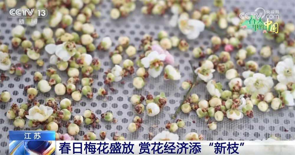 同样,在新沂市高流镇,连片的梅园也迎来了最美的时节。除了赏花,当地的梅花产业还延伸到了深加工领域。在这家梅花加工厂,工人们将采摘下来的新鲜梅花进行筛选、烘干,制作成清香怡人的梅花茶。