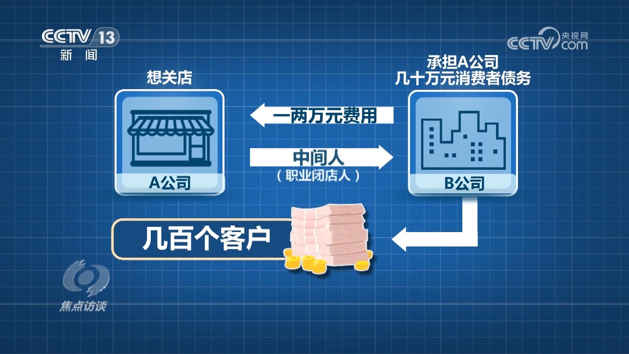 央视网消息(焦点访谈):中国消费者协会在3月15日公布的2024年十大消费维权舆情热点中,“职业闭店人”帮商家卷款跑路坑害消费者被点名。“职业闭店人”一般涉及预付费这一消费模式。不少消费者有时预付了费用,店家就关门了,有的还会声称把这些会员引导到其他门店去消费。这背后往往隐藏着“职业闭店人”的身影。他们到底是怎么运作?怎么盈利?记者进行了调查。