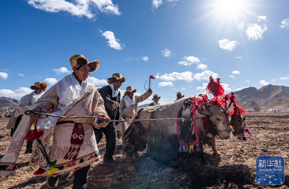 Xinhua Semua media+丨 Millennium Majlis PREFACE Memecah tanah untuk berdoa untuk kekayaan -petani tibet yang mengadakan majlis membajak musim bunga besar