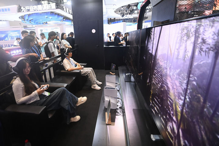 2024年9月25日,观众在第三届全球数字贸易博览会的游戏科学展区体验国内首款3A游戏“黑神话·悟空”。新华社记者 黄宗治 摄