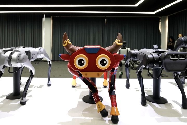 2025年2月10日,杭州云深处科技的工作人员在动态展示“绝影”系列机器人。新华社记者 黄宗治 摄