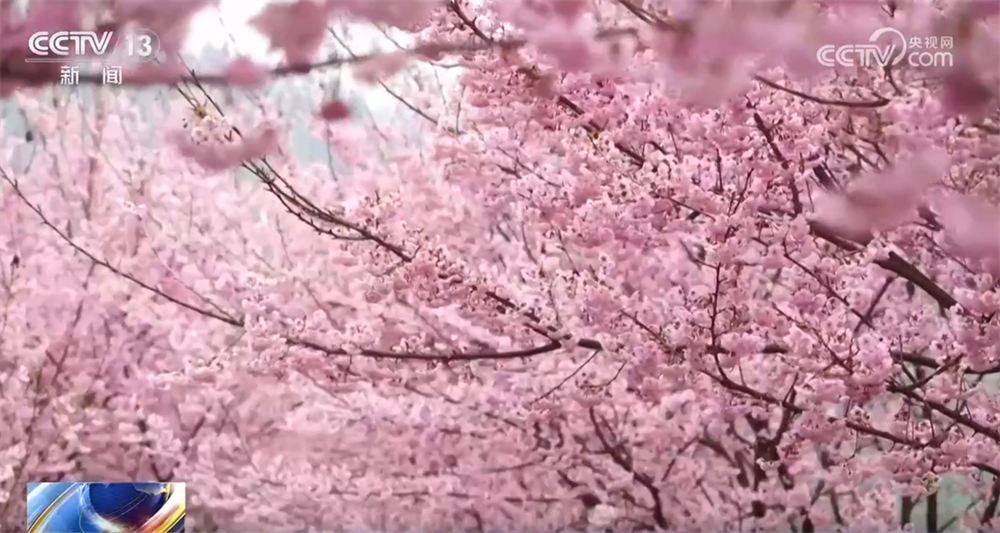 quin Sakura Valley kasabası," Sakura Valley Parkı'nın başı, " erken kiraz çiçekleri, büyük kırmızı ve pembe. Birçok turist, baharın nefesini hissetmek için fotoğraf çeker ve kiraz çiçeği ağaçlarının altında check -in yapar.