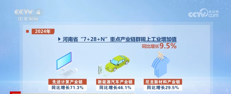 2024'te Endüstriyel Grup, 2024'te Endüstriyel Katkı Yıllık% 9,5. Bunlar arasında, gelişmiş bilgi işlem endüstrisi zincirinin, yeni enerji aracı endüstrisi zincirinin ve naylon yeni malzeme endüstrisi zincirinin katma değeri sırasıyla% 71.3,% 46.1 ve% 29,5 oranında artmıştır. Henan'ın yeni enerji araçları "yeni uzmanlık" haline gelir ve rekor bir yüksekliğe çarpar