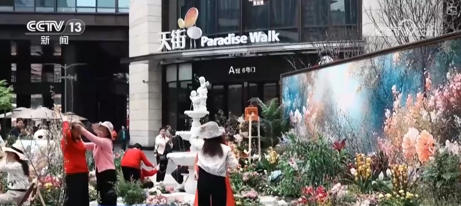 莫奈花园艺术首展正在这里举办,蝴蝶兰、郁金香、绣球等共50个品种的花卉灵动组合,搭配上周边延伸的花市,让过往市民不禁停下脚步。