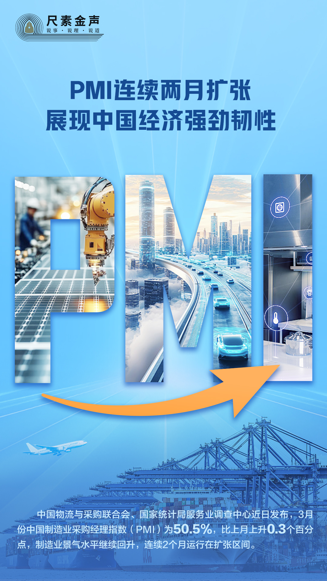 中國物流與採購聯合會、國家統計局服務業調查中心近日發布,3月份中國製造業採購經理指數(PMI)為50.5%,比上月上升0.3個百分點,製造業景氣水平繼續回升,連續2個月運行在擴張區間。
