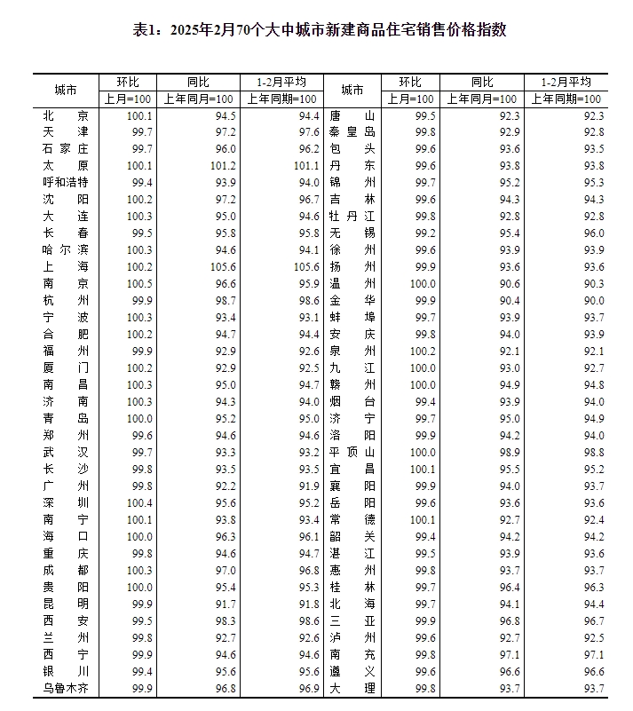 Perubahan harga jualan perumahan komersial di 70 bandar besar dan sederhana pada bulan Februari 2025