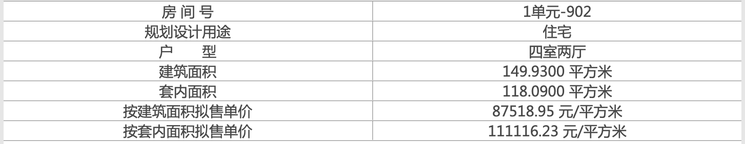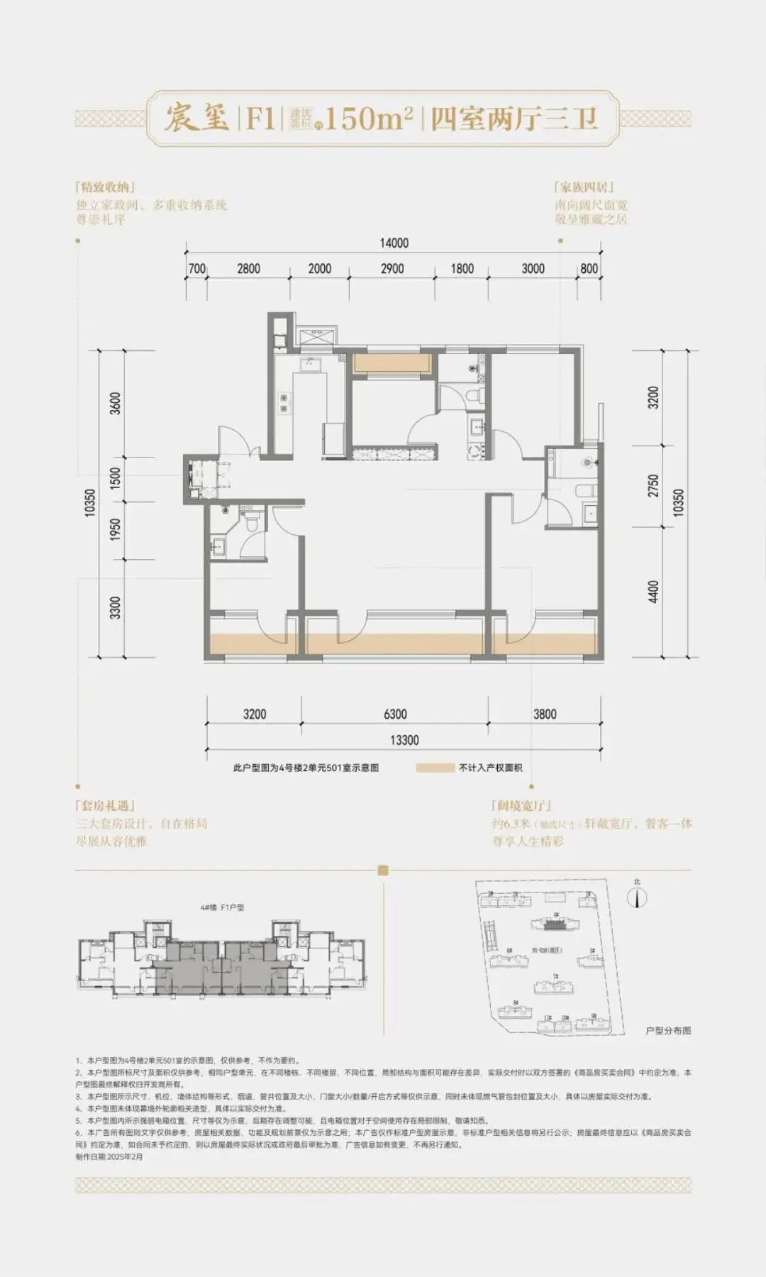 建面149.93㎡四室两厅(F户型),套内面积118.09㎡,得房率78.8%;