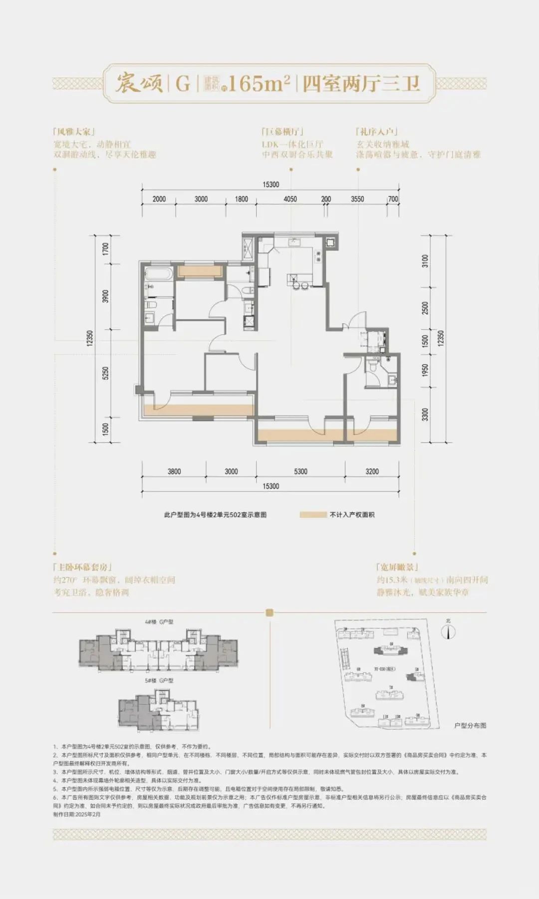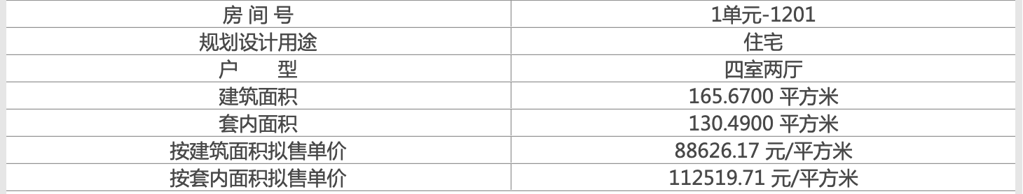 建面165.67㎡四室两厅(G户型),套内面积130.49㎡,得房率78.8%。