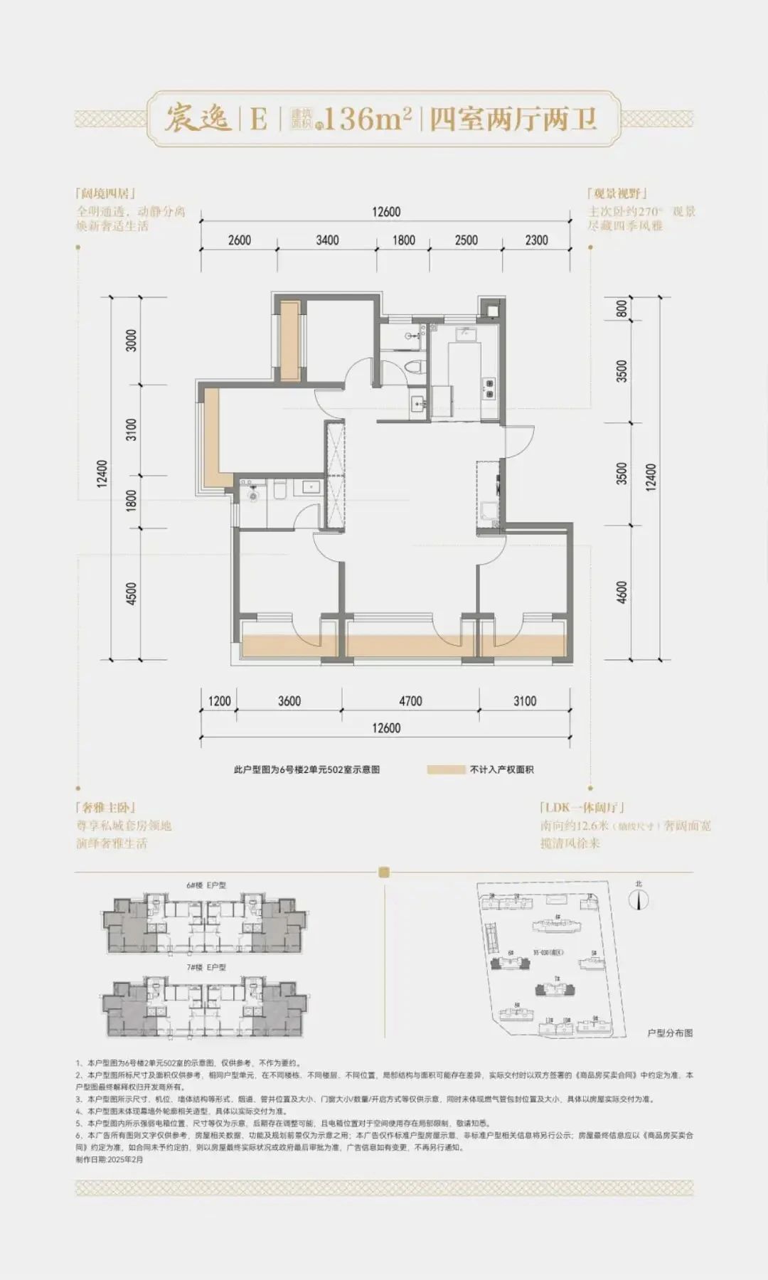 建面136.89㎡四室两厅(E户型),套内面积108.81㎡,得房率79.5%。