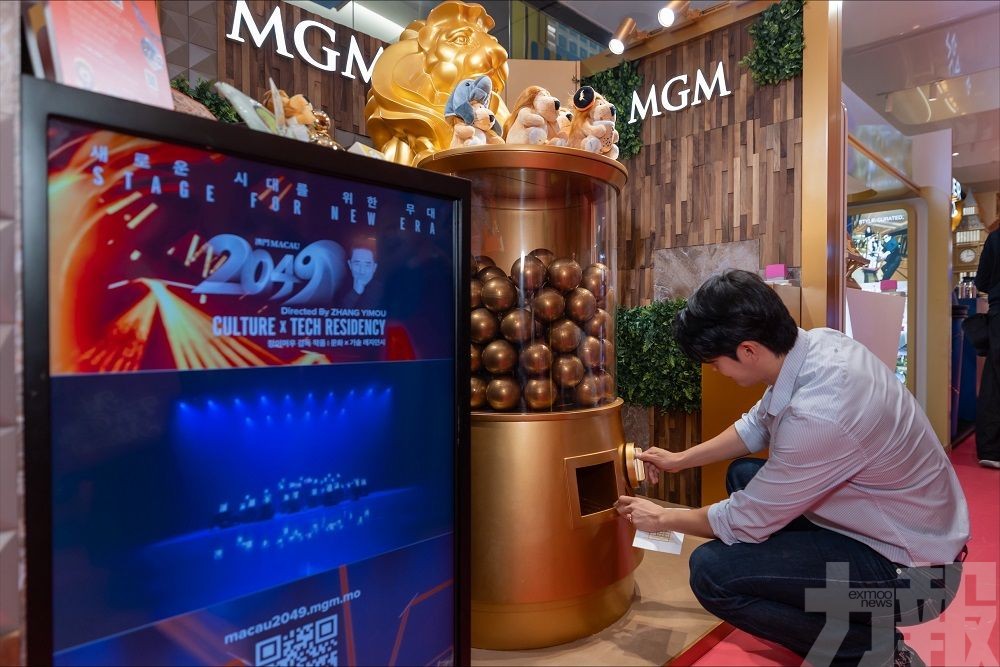 美高梅展位以全新設計的金獅扭蛋機增加互動趣味,觀眾可透過參與趣味扭蛋遊戲贏取超過3,000份驚喜禮遇,包括《澳門2049》門票及折扣優惠、保利美高梅博物館主題紀念品,以及進駐澳品薈的多個本地文創品牌的特色禮盒等。活動期間,美高梅吉祥物善獅Leo亦驚喜現身,與觀眾親切互動,增添歡樂氣氛。同時,美高梅亦邀請當地知名博主到場,透過其在地視角深入介紹澳門的文化特色與旅遊亮點,進一步擴大活動影響力。美高梅期望藉不同舉措推廣「澳門製造、澳門品牌、澳門設計」以及旗下的豐富文旅體驗,讓更多韓國旅客將澳門列為首選旅遊目的地。