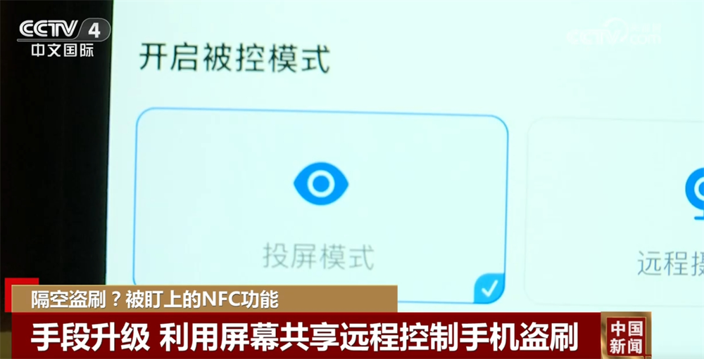 NFC是一种短距离无线通信技术,手机NFC功能在给日常支付带来便利的同时,也被不法分子盯上了。除了这类套取被害人银行卡信息、远程绑定电子钱包的盗刷形式外,近期还有一种常见高发类型,就是利用屏幕共享功能远程控制被害人的手机,进行隔空盗刷。